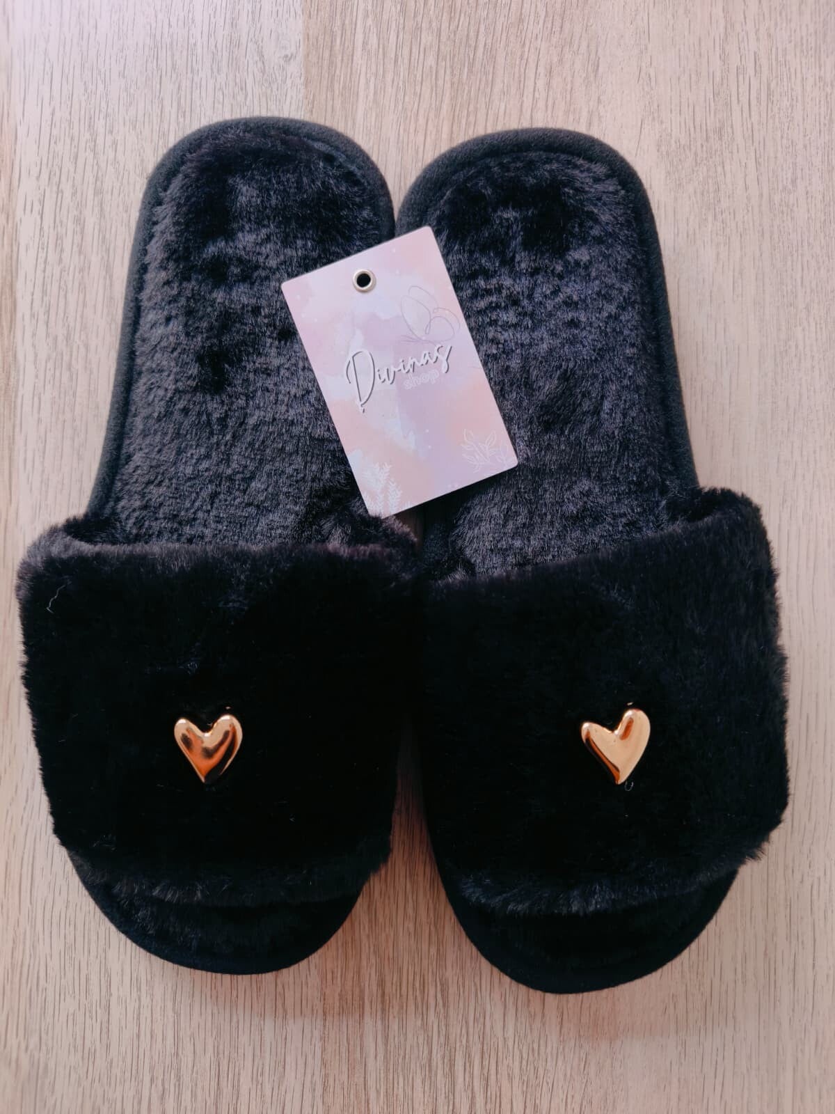 Pantuflas Elegancia y Confort con Detalle de Corazón Dorado 🖤✨